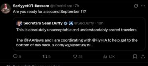 When US Secretary of Transportation Sean Duffy reacted to the incidents by posting on X that “this is absolutely unacceptable and understandably scared travelers” while vowing to get to the bottom of the hacking, the group responded directly to his message, taunting, “Are you ready for a second September 11?,” referring to deadly al-Qaeda suicide terrorist attacks in the US in 2001.