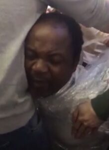 Passenger-recorded videos that later circulated online showed him nearly naked, immobilized and wrapped in plastic film. He could be heard shouting for help as a fellow passenger assisted in removing the stretch film, while others protested his treatment. A police officer in civilian clothing was also seen holding a roll of packing tape, apparently used on Chedjou.