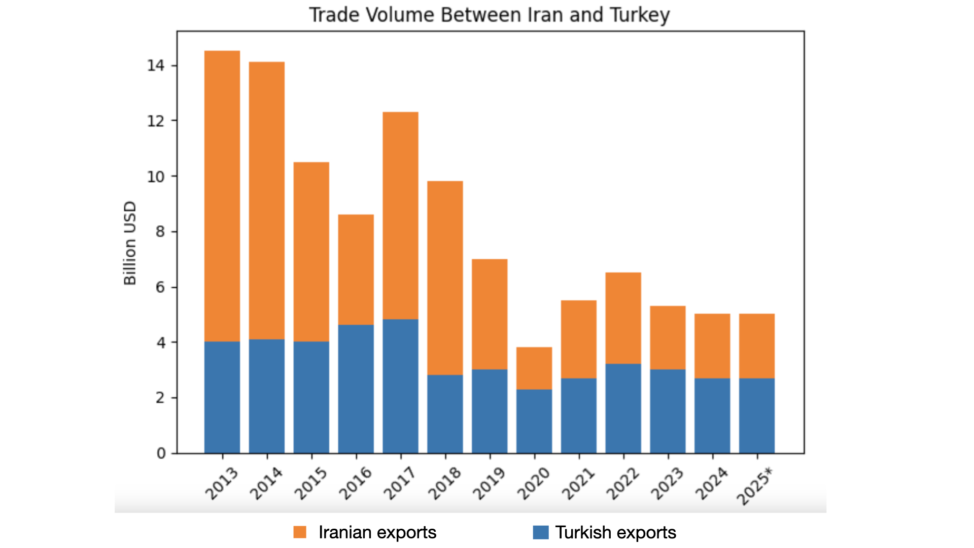 According to World Bank data, Iran’s exports to Turkey reached $5.8 billion in 2022, while Turkey’s exports to Iran totaled $6.1 billion the same year. More recent figures from Turkey’s TurkStat statistical agency show that in the first 11 months of 2025, Turkey exported $2.7 billion worth of goods to Iran and imported $2.3 billion, showing the resilience of bilateral trade despite years of US sanctions pressure. In energy alone, Turkey sourced 13.5 percent of its natural gas imports from Iran in 2024, a dependence that Ankara has struggled to reduce.