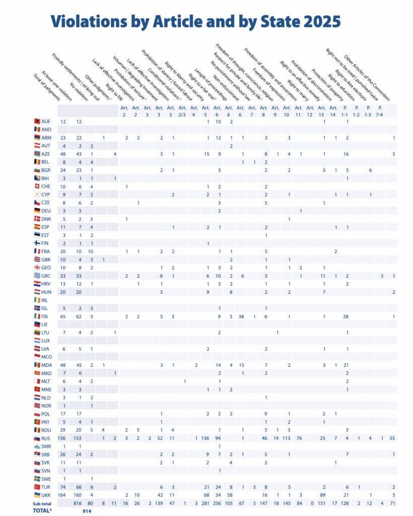 Across the Council of Europe, Article 7 violations remained exceptional in 2025. The vast majority of member states recorded no findings under this provision. The concentration of Article 7 violations in Turkish cases, as reflected in the court’s annual statistics, placed Turkey among the very few states where the court identified systemic shortcomings in the application of the principle of legality during the year.